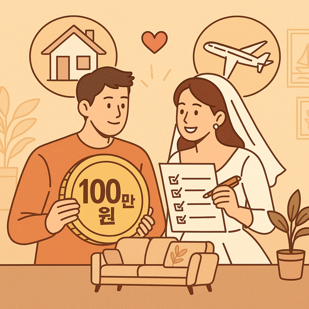 이 점이 가장 큰 장점이에요. 용도 제한이 없기 때문에, 부부가 필요로 하는 곳에 자유롭게 사용할 수 있습니다. 저희는 이 돈을 신혼집에 필요한 가구를 사는 데 썼는데, 덕분에 초기 정착 비용 부담이 훨씬 줄었어요.