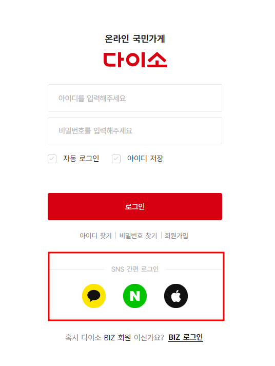 1. 홈페이지 접속 : 다이소 공식 홈페이지로 이동합니다.