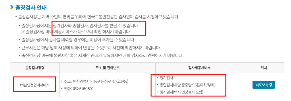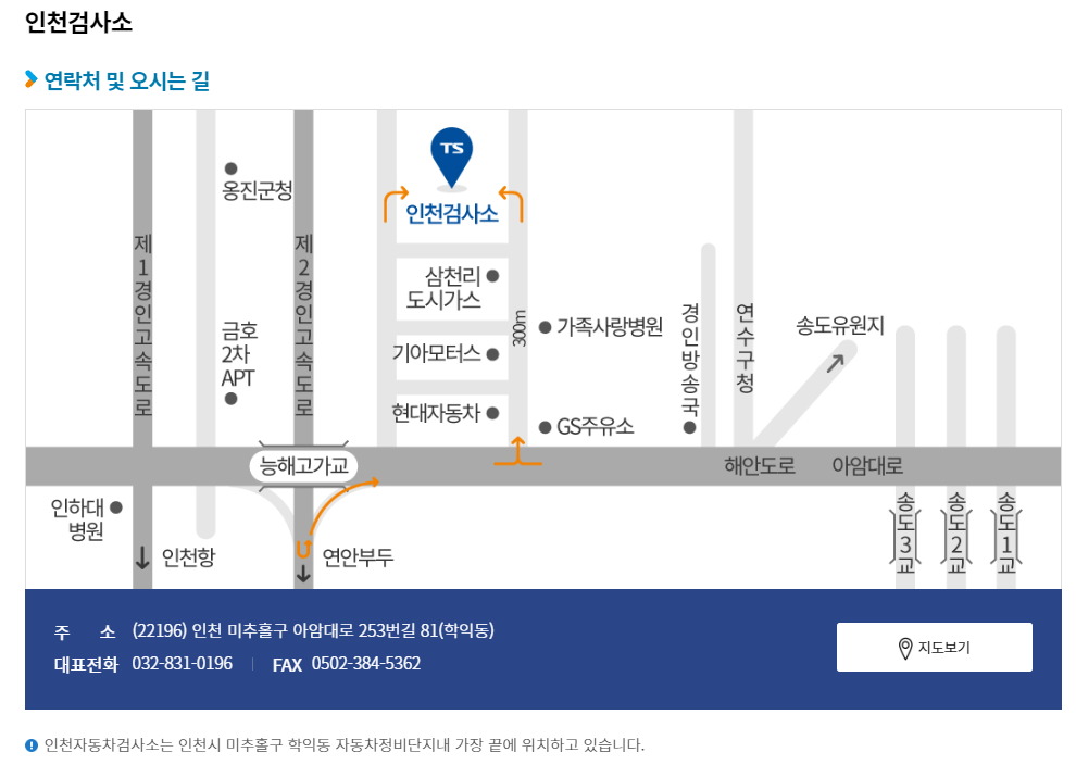 인천은 미추홀구에 위치해 있습니다. 그리고 인천에는 인천검사소이외에 검사소가 2군데 더 있으니 아래를 확인해 보세요.