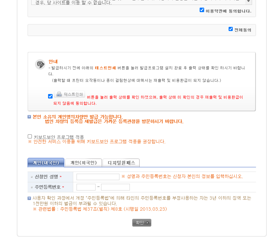 1. 등록증재발급을 클릭하세요. 이곳은 비회원으로 발급이 가능하나 공인인증서가 꼭 필요합니다.