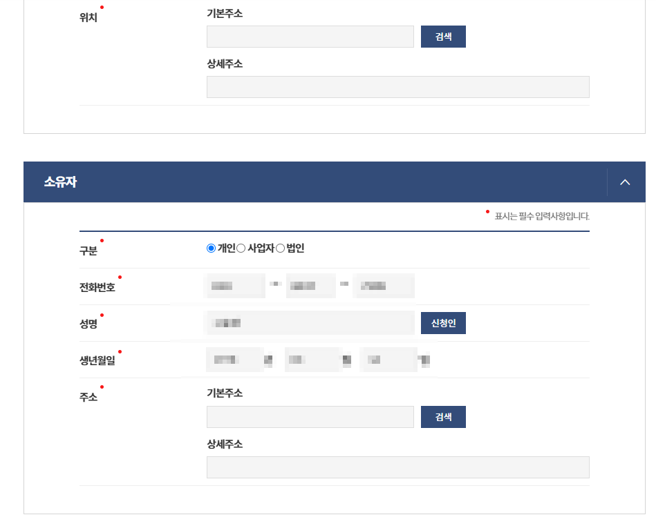 2. 아래 보이시는 자동차등록번호 및 주소 그리고 소유자까지 작성해 주세요.
