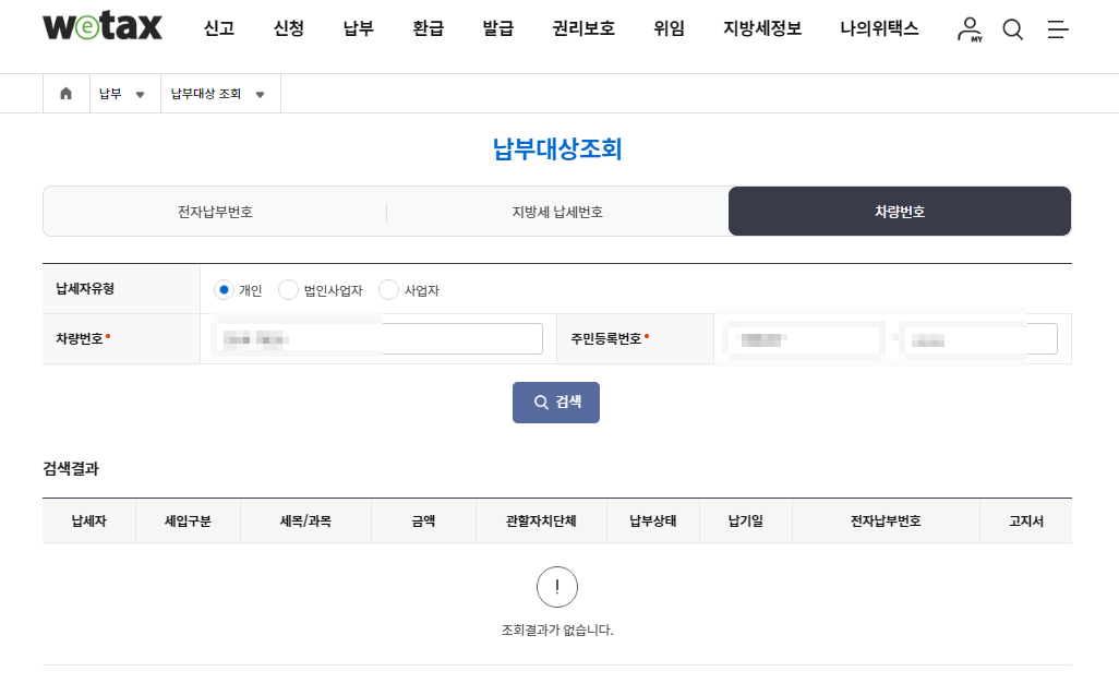 2. 검색을 확인하시면 아래와 같이 떠요. 저는 다행이도 없네요. 제때 납부 했나 보네요.