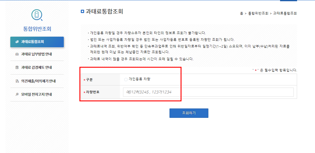 과태료 통합조회 싸이트