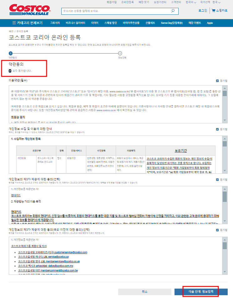 3. 약관에 동의 하시고 마지막에 다음단계 정보입력을 첵크 하세요.