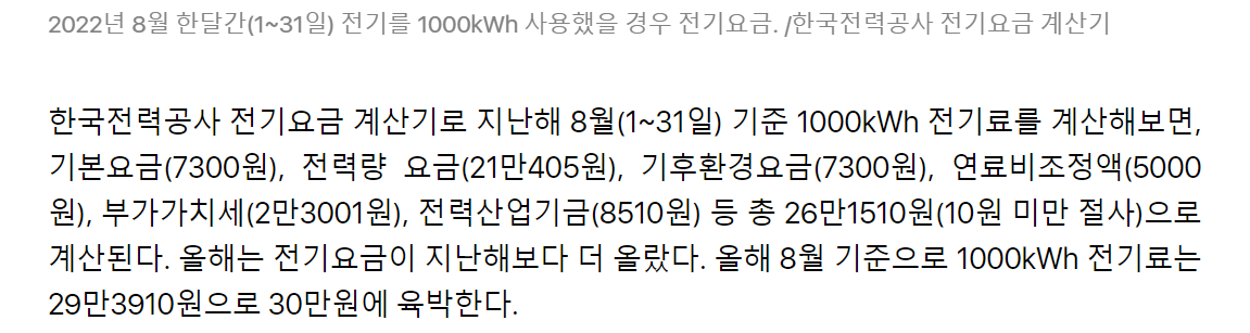 만약 당신이 1000kWh 전기료를 쓰게 된다면? -> 웹싸이트에서 찾아 봤습니다.