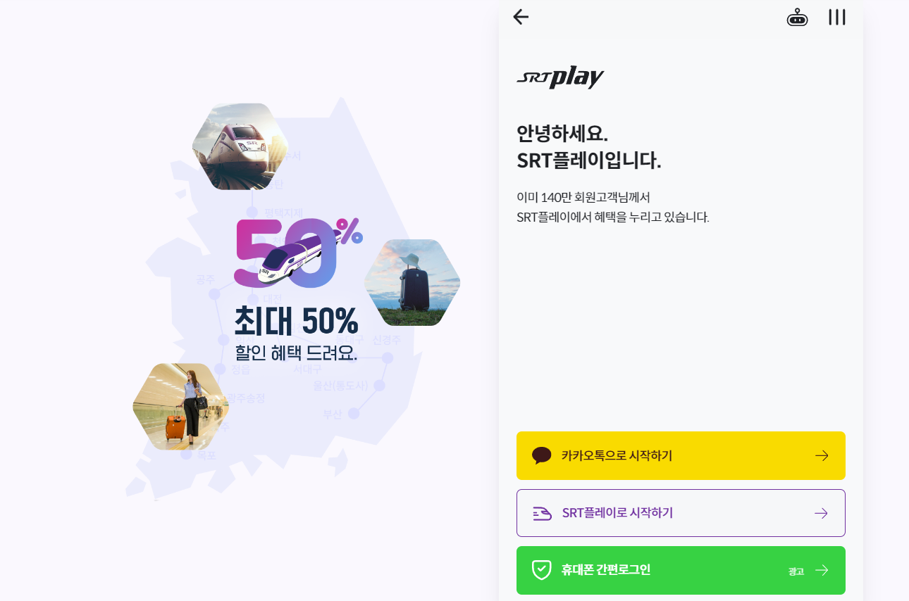 | SRT Play 가입방법 | 카카오톡, 간편로그인 혹은 srt 플레이 |